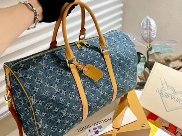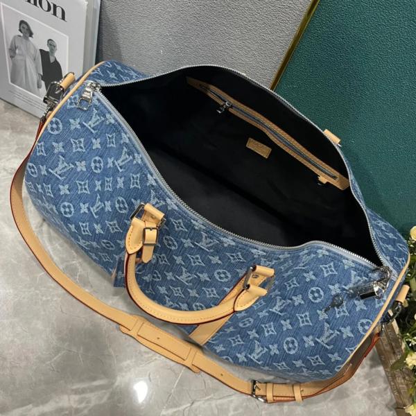 Louis_Vuitton_LV Keepall Bandoulire NBA Edition Premium Monogram Unisex Duffle Bag With Dust Bag & Accessories (Denim Brown - 684)